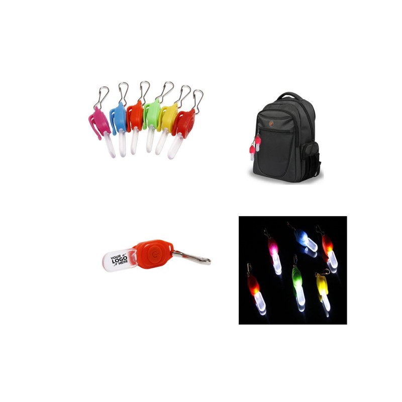 This zipper LED light is small, practical and convenient. Help make your family visible in the dark with a mini zip light. With its practical snap hook you can hook it to almost anything like your rucksack, jacket zipper, backpack, coat, and etc. Batteries: 2 x CR1220 (included). Assorted colors. Your logo is welcome. | |||||