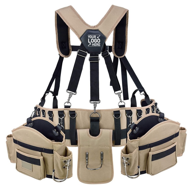 It’s a very durable tool belt made by strong quality 1680D oxford fabric . Adjustable suspender straps and 5-point connection for even weight distribution. Shoulder straps have enhanced padding and cooling mesh for ultimate breathability. Grommets fit 30”-50” waist. Iron buckles and reinforced stitching at key stress points make this belt ideal for tough jobs. Hammer holder, 2 power tool hooks, and 2 large detachable pouches each with 4 pockets and built-in dividers to keep your tools organized. Extra ring attachments to place pouches at preferred spots. It’s used by a wide variety of professionals including electricians, handymen, carpenters, and more. The perfect belt for framing, roofing, construction, or DIY projects. MOQ 300pcs/style with customized logo acceptable. We can send you more tool belt style for your review, welcome your enquiry. Price is for shipping by sea.