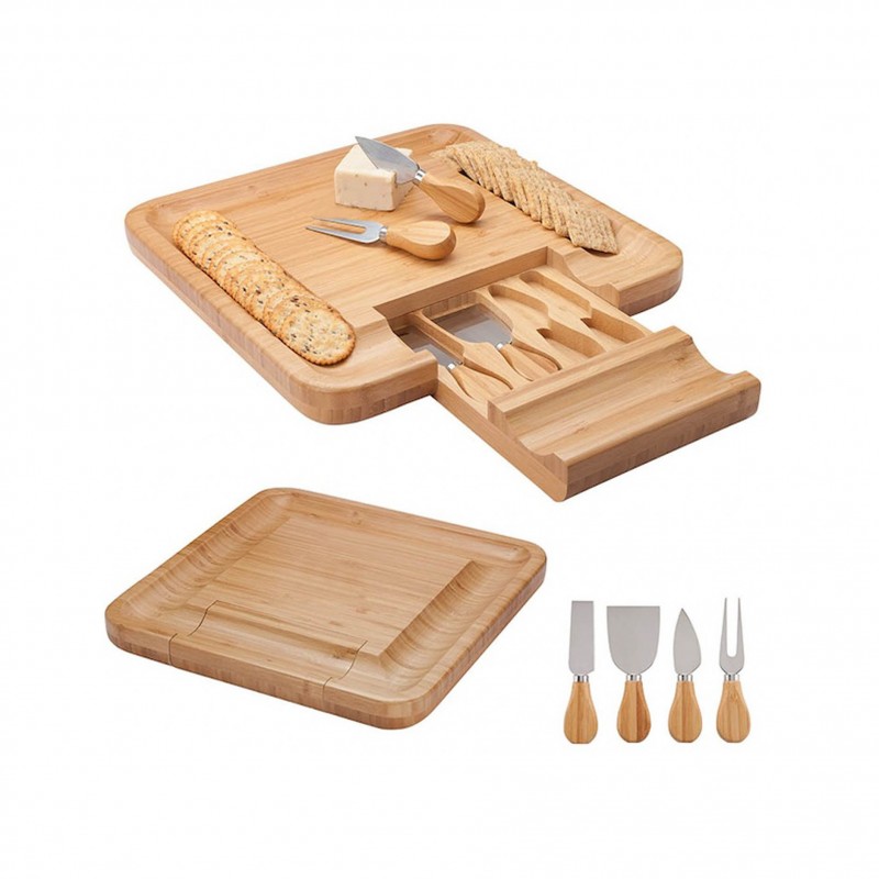 This bamboo cheese plate is made of quality wood and comes with the appropriate utensils: hard cheese knife, semi-hard cheese knife, cutter and cheese fork.